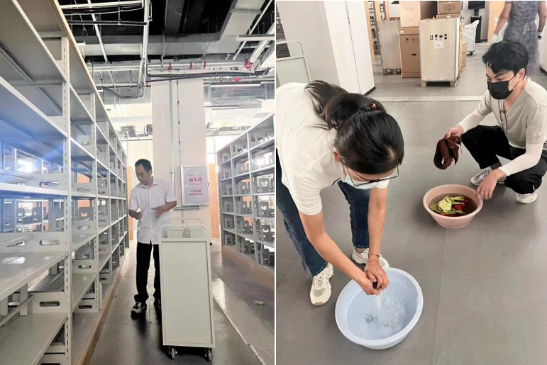 基礎(chǔ)部和圖書館全體教職工到圖書館進(jìn)行書架和書立除塵擦拭勞動(dòng)。在圖書館現(xiàn)場(chǎng),他們分工合作,認(rèn)真清掃,一起擦拭了圖書館168個(gè)2.2米高的書架,清洗擺放了2016個(gè)書立。盡管室內(nèi)環(huán)境悶熱,大家仍然干勁十足,除塵滌垢,積極投入,細(xì)致認(rèn)真,使書架變得干凈整潔,煥然一新,為新學(xué)期帶來(lái)了新氣象,在清潔圖書館的同時(shí)點(diǎn)亮了學(xué)院精神文明之光。