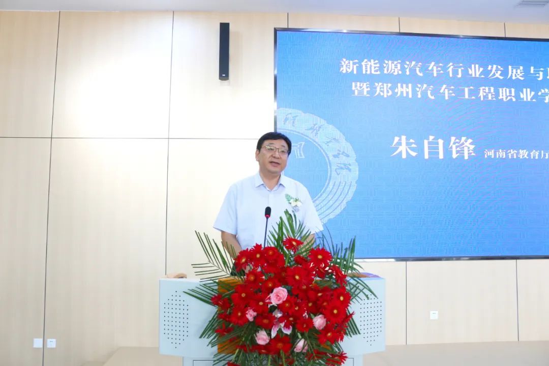 最后,省教育廳黨組成員、副廳長(zhǎng)朱自鋒發(fā)表講話,他強(qiáng)調(diào),職業(yè)教育是國(guó)民教育體系和人力資源開發(fā)的重要組成部分,肩負(fù)著培養(yǎng)多樣化人才、傳承技術(shù)技能、促進(jìn)就業(yè)創(chuàng)業(yè)的重要職責(zé)。習(xí)近平總書記高度重視職業(yè)教育發(fā)展,在 2021年4月召開的全國(guó)職業(yè)教育大會(huì)上作出重要指示,強(qiáng)調(diào)“加快構(gòu)建現(xiàn)代職業(yè)教育體系,培養(yǎng)更多高素質(zhì)技術(shù)技能人才、能工巧匠、大國(guó)工匠”。黨的二十大進(jìn)一步明確了對(duì)職業(yè)教育“職普融通、產(chǎn)教融合、科教融匯、優(yōu)化職業(yè)教育類型定位”的發(fā)展方向。中辦國(guó)辦印發(fā)的《關(guān)于推動(dòng)現(xiàn)代職業(yè)教育高質(zhì)量發(fā)展的意見(jiàn)》也對(duì)職業(yè)教育發(fā)展提出了“到 2025年,職業(yè)教育類型特色更加鮮明,現(xiàn)代職業(yè)教育體系基本建成,技能型社會(huì)建設(shè)全面推進(jìn):到 2035年,職業(yè)教育整體水平進(jìn)入世界前列,技能型社會(huì)基本建成”的發(fā)展目標(biāo)??梢哉f(shuō)職業(yè)教育大有可為,值得作為!我省作為部省共建、整省推進(jìn)的 7個(gè)國(guó)家職教創(chuàng)新發(fā)展高地建設(shè)省份之一,職業(yè)教育發(fā)展具有良好的發(fā)展基礎(chǔ)和發(fā)展前景。省委省政府認(rèn)真貫徹黨和國(guó)家關(guān)于職業(yè)教育發(fā)展的精神,將職業(yè)教育發(fā)展作為實(shí)施“創(chuàng)新驅(qū)動(dòng)、科教興省、人才強(qiáng)省”戰(zhàn)略的重要內(nèi)容予以推進(jìn),全面優(yōu)化職業(yè)教育學(xué)校布局、專業(yè)結(jié)構(gòu),深入實(shí)施職業(yè)教育專業(yè)與產(chǎn)業(yè)匹配,積極推進(jìn)職教集團(tuán)實(shí)體化運(yùn)作,加快建設(shè)一批本專科職業(yè)教育學(xué)校,推動(dòng)全省職業(yè)教育高質(zhì)量發(fā)展,以實(shí)現(xiàn)人口紅利向人才紅利轉(zhuǎn)變。鄭州汽車工程職業(yè)學(xué)院的設(shè)立,是落實(shí)省委省政府關(guān)于高等教育“三個(gè)調(diào)整優(yōu)化”的成果,對(duì)優(yōu)化我省職業(yè)教育結(jié)構(gòu),擴(kuò)大職業(yè)教育規(guī)模具有重要意義。
