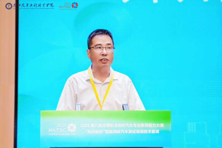樓志剛代表主辦方中國(guó)汽車(chē)工程學(xué)會(huì)致辭,他表示鄭州汽車(chē)工程職業(yè)學(xué)院承辦此賽事,是貫徹習(xí)近平總書(shū)記關(guān)于“推動(dòng)職業(yè)教育與產(chǎn)業(yè)需求緊密對(duì)接”重要指示的具體實(shí)踐。賽事倡導(dǎo)參賽教師將賽場(chǎng)經(jīng)驗(yàn)轉(zhuǎn)化為教學(xué)案例,推動(dòng)課程與行業(yè)標(biāo)準(zhǔn)接軌;深化校企合作,實(shí)現(xiàn)“測(cè)試車(chē)間即課堂、工程師即講師”;著力培養(yǎng)適應(yīng)智能網(wǎng)聯(lián)產(chǎn)業(yè)需求的技術(shù)技能人才,為打造高素質(zhì)教師隊(duì)伍、助力中國(guó)汽車(chē)產(chǎn)業(yè)智能化升級(jí)貢獻(xiàn)力量。