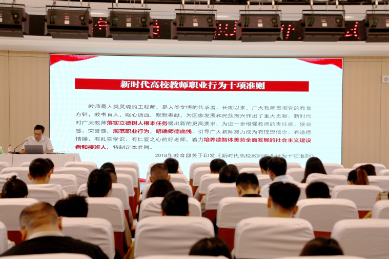 秋日朗照,新程啟幕!為幫助新入職教職工明確育人使命、提升專業(yè)素養(yǎng)、快速適應(yīng)教育教學(xué)崗位,8月25日上午,鄭州汽車工程職業(yè)學(xué)院2025年秋季新教職工培訓(xùn)開班儀式在學(xué)術(shù)交流中心二樓報告廳順利舉行。全體校領(lǐng)導(dǎo)、中層干部、專任教師、輔導(dǎo)員及2025年新入職教師共同參加。儀式由學(xué)校教務(wù)處處長王中主持。