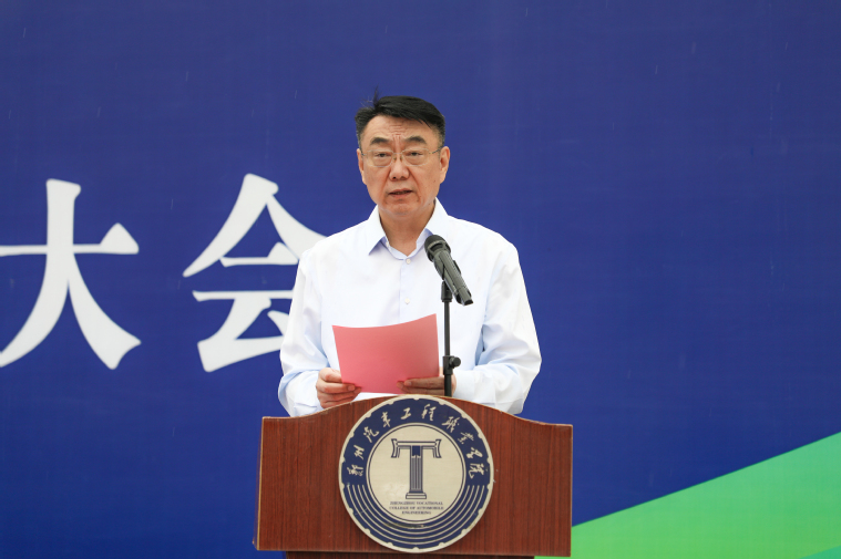 校長薛培軍作軍訓(xùn)動員講話。他首先代表學(xué)校向2025級全體新生表示熱烈歡迎和誠摯祝賀,并指出,軍訓(xùn)是大學(xué)生活的第一課,不僅是對體能的鍛煉,更是對意志品質(zhì)的錘煉、對國防觀念的強(qiáng)化。今年正值中國人民抗日戰(zhàn)爭暨世界反法西斯戰(zhàn)爭勝利80周年,他勉勵同學(xué)們要銘記歷史、緬懷先烈,增強(qiáng)憂患意識,傳承愛國精神,并向全體參訓(xùn)學(xué)生提出三點希望:一是要錘煉品格、磨礪意志。要以飽滿熱情投入訓(xùn)練,嚴(yán)守紀(jì)律、團(tuán)結(jié)協(xié)作,展現(xiàn)鄭汽學(xué)子良好風(fēng)貌;二是要心懷家國、技能報國。將個人成長融入國家發(fā)展,樹立工匠精神,以專業(yè)所學(xué)服務(wù)社會所需;三是要知行合一、挺膺擔(dān)當(dāng)。將軍訓(xùn)中培養(yǎng)的紀(jì)律意識、頑強(qiáng)作風(fēng)延續(xù)至學(xué)習(xí)實踐,德技并修、精益求精,在民族復(fù)興征程中奮勇爭先。他強(qiáng)調(diào),職業(yè)教育重在實踐,希望同學(xué)們將軍訓(xùn)中培養(yǎng)的紀(jì)律意識、頑強(qiáng)作風(fēng)和團(tuán)隊精神延續(xù)到今后的學(xué)習(xí)與生活中,努力成長為新時代的能工巧匠、大國工匠。