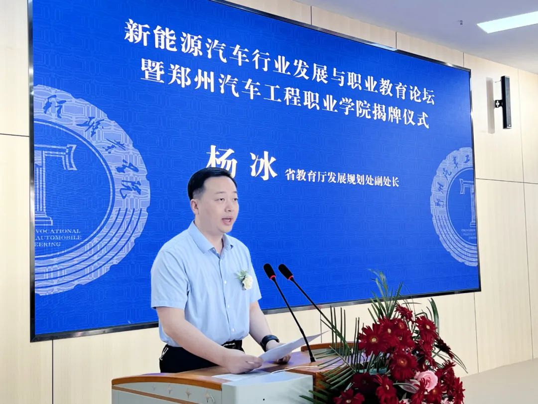 儀式現(xiàn)場(chǎng),河南省教育廳發(fā)展規(guī)劃處楊冰副處長(zhǎng)宣讀了《河南省人民政府關(guān)于設(shè)立鄭州汽車工程職業(yè)學(xué)院的批復(fù)》。