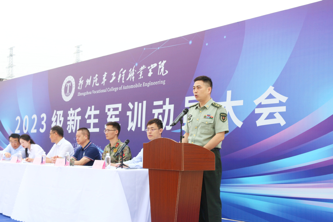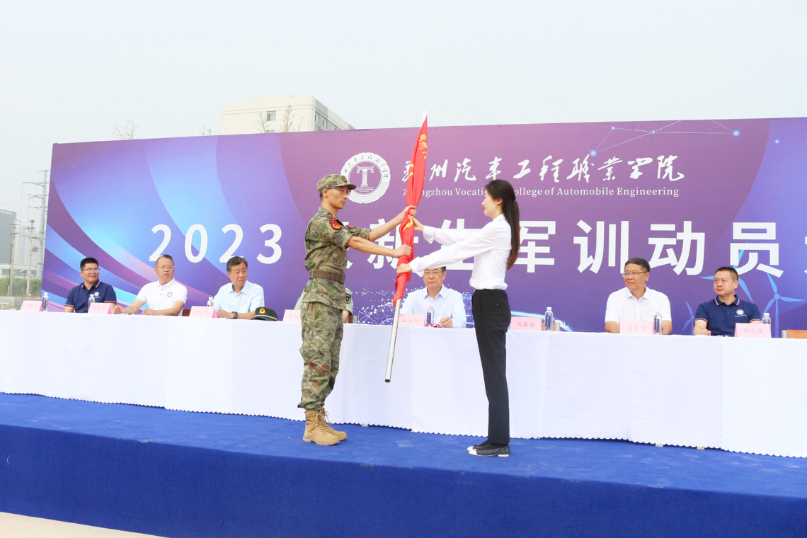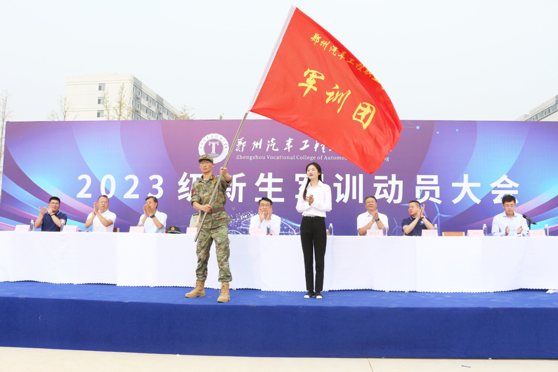 隨后,理事長馬嘉璐向軍訓(xùn)團(tuán)授予了團(tuán)旗。薛培軍校長宣布“鄭州汽車工程職業(yè)學(xué)院2023級新生軍訓(xùn)開始!”