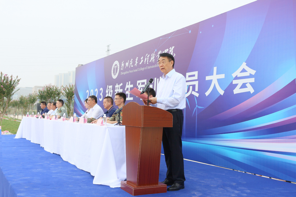 上午八時(shí)許,動員大會在激昂雄壯的國歌聲中正式拉開序幕。中原區(qū)武裝部軍事科中??崎L付欣文、訓(xùn)練團(tuán)團(tuán)長楊輝;鄭州汽車工程職業(yè)學(xué)院理事長馬嘉璐、校長薛培軍、副校長、校長助理及各部門、各學(xué)院主要領(lǐng)導(dǎo),全體2023級新生輔導(dǎo)員一同參加動員大會。