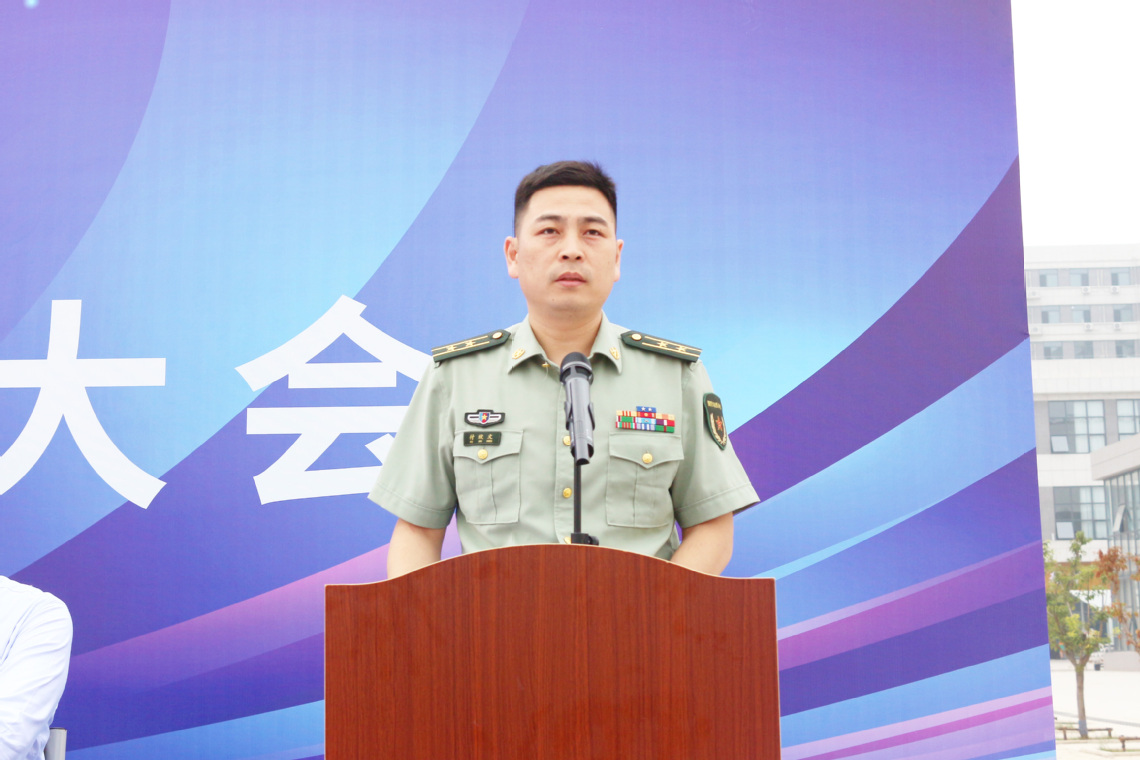 鄭州市中原區(qū)武裝部軍事科科長付欣文中校作動員講話。他表示將號召全體教官以飽滿的熱情、昂揚(yáng)的斗志參與到此次軍訓(xùn)當(dāng)中,和大家一起揮灑汗水,共同成長!軍訓(xùn)是進(jìn)入大學(xué)的第一課,他希望同學(xué)們增強(qiáng)國防意識,培養(yǎng)愛國情懷,以軍人的作風(fēng)、軍人的意志,嚴(yán)格要求自己,克服一切困難,逐夢無悔青春。