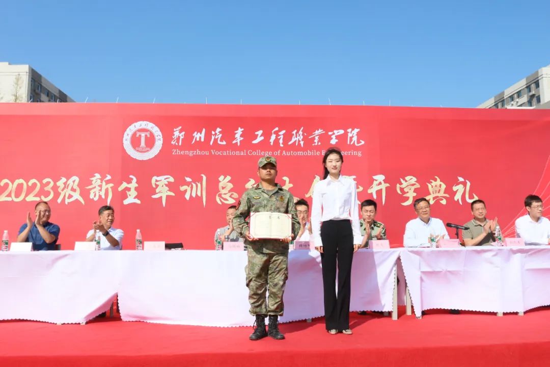 為表彰先進(jìn),鞏固和深化軍訓(xùn)成果,學(xué)校對(duì)2023年新生軍訓(xùn)工作中的先進(jìn)集體和先進(jìn)個(gè)人予以表彰,鄭州市中原區(qū)人武部副部長(zhǎng)張飛中校宣讀了《表彰決定》。