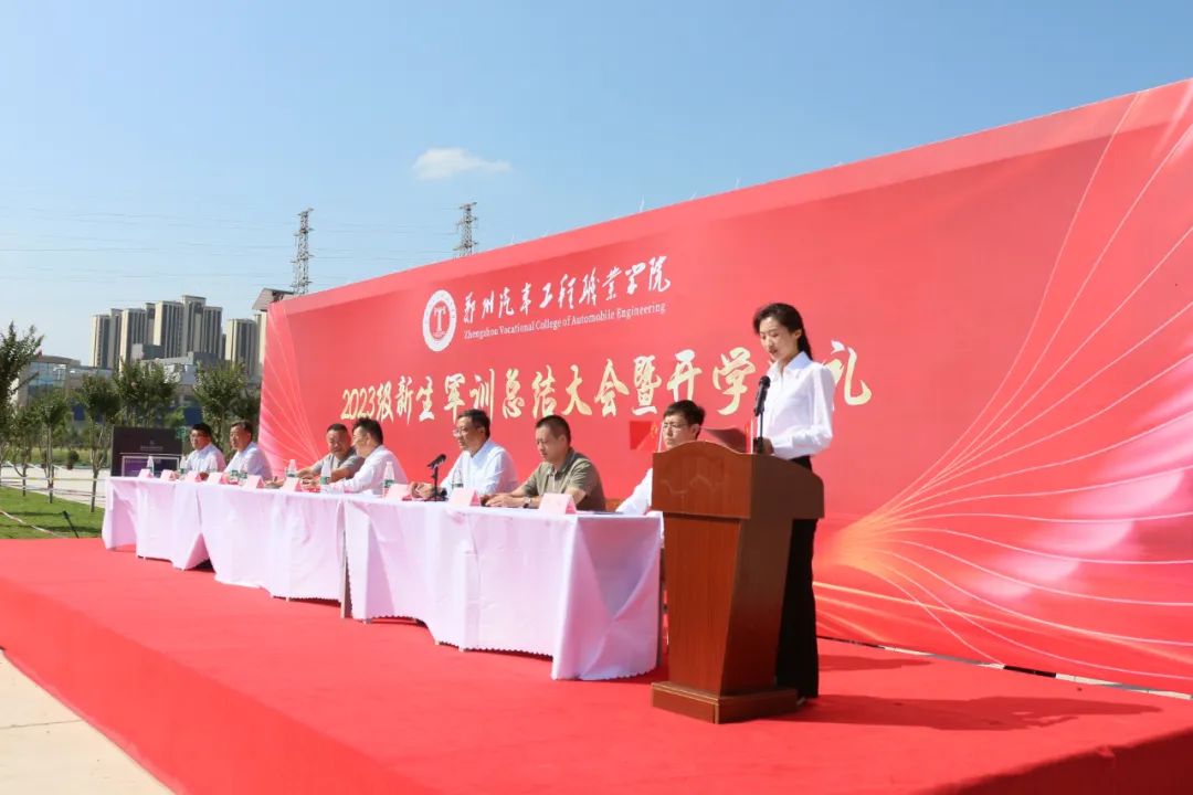 盛夏終章,金秋送爽,9月20日上午9時(shí),汽車工程職業(yè)學(xué)院2023級(jí)新生軍訓(xùn)總結(jié)大會(huì)暨開(kāi)學(xué)典禮在學(xué)校田徑場(chǎng)召開(kāi)。董事長(zhǎng)、名譽(yù)校長(zhǎng)馬錫林,理事長(zhǎng)馬嘉璐,校長(zhǎng)薛培軍,鄭州市中原區(qū)人武部副部長(zhǎng)張飛中校,軍訓(xùn)團(tuán)團(tuán)長(zhǎng)楊輝,副校長(zhǎng)孫廣杰、彭志宏、王新宇、孫紅軍,校長(zhǎng)助理李一維、劉景華,學(xué)校各部門負(fù)責(zé)同志、參訓(xùn)教官、全體教師和全體2023級(jí)新生參加了大會(huì)。會(huì)議由副校長(zhǎng)彭志宏主持。