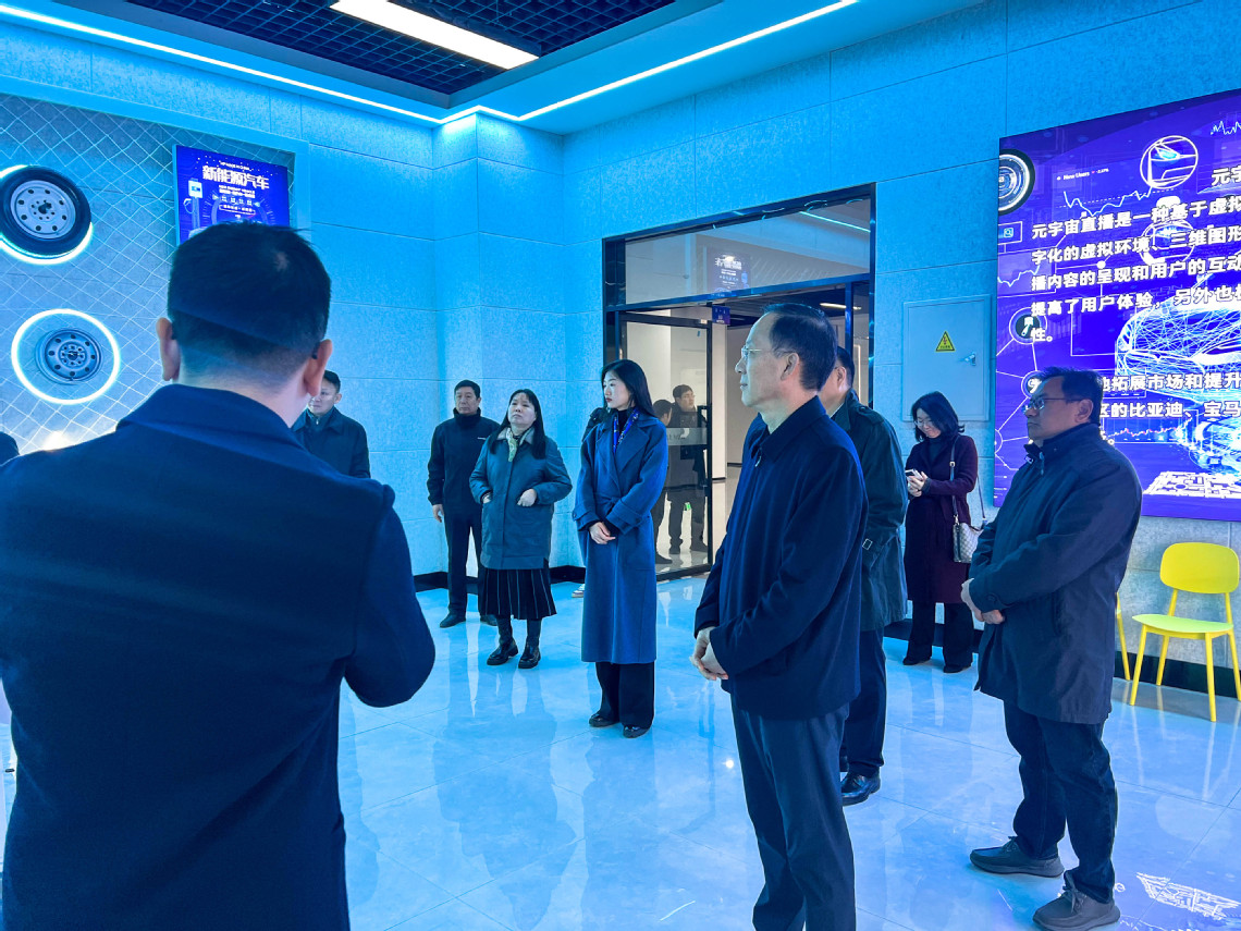鄭州汽車(chē)工程職業(yè)學(xué)院校長(zhǎng)薛培軍向陳紅民副市長(zhǎng)一行詳細(xì)介紹了學(xué)?;厩闆r及與比亞迪、起亞、宇通、京東、華為等多家知名企業(yè)開(kāi)展校企合作、聯(lián)合辦學(xué)等相關(guān)情況。隨后,相關(guān)領(lǐng)導(dǎo)到我校汽車(chē)實(shí)訓(xùn)中心、元宇宙直播中心、圖書(shū)館及校企合作實(shí)訓(xùn)基地等考察指導(dǎo)工作。