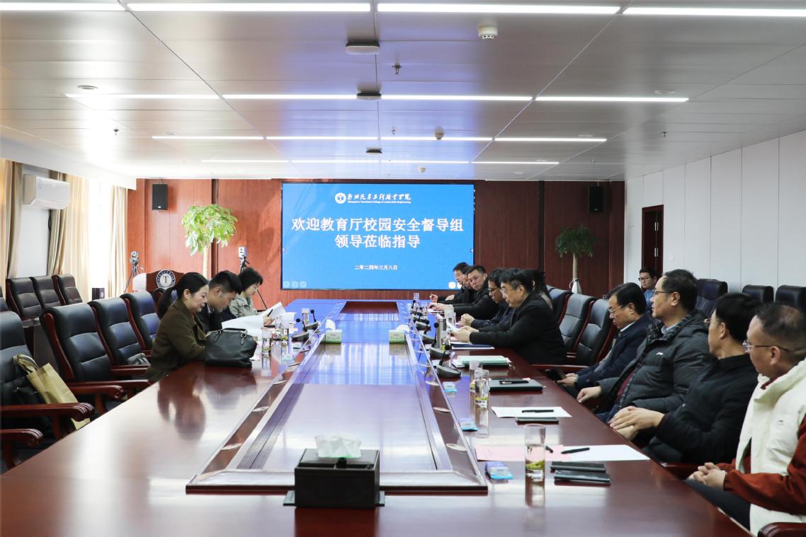 隨后,在行政樓7樓會議室聽取了我校日常安全檢查及春季開學(xué)安全排查工作匯報,匯報會上,薛校長代表學(xué)校對省教育廳領(lǐng)導(dǎo)蒞臨我校檢查指導(dǎo)工作表示熱烈的歡迎,就2024年春季開學(xué)校園安全工作進(jìn)行了詳細(xì)的匯報。