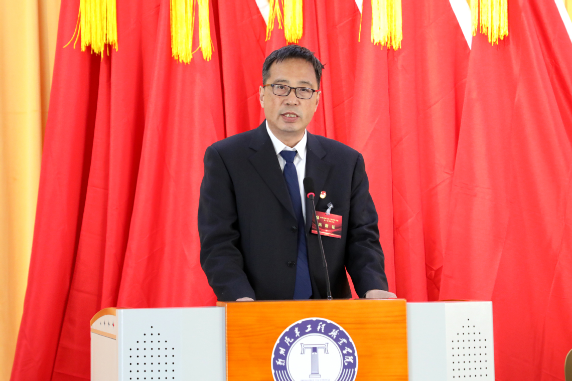 開幕式上,省委教育工委專職委員何秀敏代表省委教育工委、省教育廳向大會(huì)的召開表示祝賀,向全校共產(chǎn)黨員和師生員工致以誠(chéng)摯的問候。他充分肯定了學(xué)校黨委自成立以來(lái)團(tuán)結(jié)帶領(lǐng)全校師生員工揚(yáng)帆啟程、拼搏向前,在黨的建設(shè)、師資隊(duì)伍、產(chǎn)教融合、校企合作等方面取得的顯著成績(jī)。他希望學(xué)校在新一屆校黨委領(lǐng)導(dǎo)下,把牢正確辦學(xué)方向,加強(qiáng)黨對(duì)學(xué)校工作的全面領(lǐng)導(dǎo),主動(dòng)融入發(fā)展大局,全面深化綜合改革,全面從嚴(yán)治黨,營(yíng)造風(fēng)清氣正政治生態(tài),推動(dòng)學(xué)校事業(yè)高質(zhì)量發(fā)展,為現(xiàn)代化河南建設(shè)做出新的更大的貢獻(xiàn)。