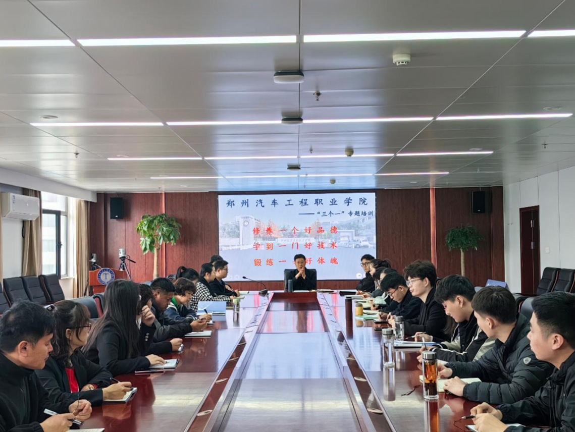 3月27日上午,鄭州汽車工程職業(yè)學院在行政樓701會議室召開“三個一”專題培訓會。副校長趙國運出席會議并作專題培訓,學生處全體成員參加會議,會議由學生處處長唐曉主持。本次會議趙校長圍繞“修養(yǎng)一個好品德、學到一門好技術、鍛煉一副好體魄”主題展開培訓。