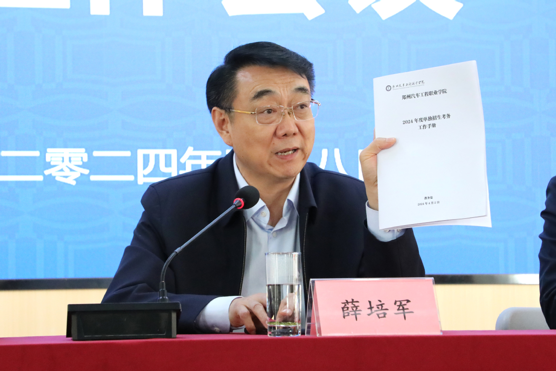 4月8日下午16時(shí),鄭州汽車工程職業(yè)學(xué)院在礪能樓一樓多媒體大廳召開2024年單獨(dú)招生考試工作會(huì)議。校長(zhǎng)薛培軍出席會(huì)議并作重要講話,黨委書記張瑞春,副校長(zhǎng)趙國(guó)運(yùn),紀(jì)委書記韓志強(qiáng)出席大會(huì),各職能部門負(fù)責(zé)同志,全體監(jiān)考老師和考務(wù)工作人員參加會(huì)議。會(huì)議由副校長(zhǎng)彭志宏主持。