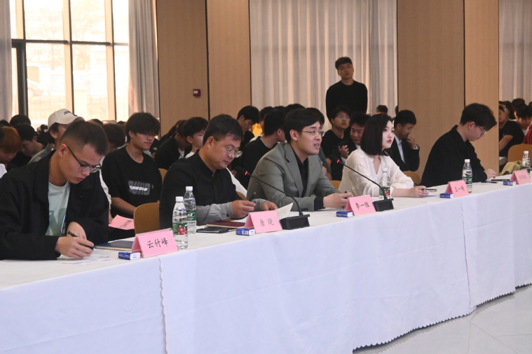 大賽邀請(qǐng)學(xué)校校長(zhǎng)助理、招生就業(yè)處處長(zhǎng)李一維、學(xué)生處處長(zhǎng)唐曉,招生就業(yè)處王一晴老師、輔導(dǎo)員云付峰、張乘睿、孫明皓老師擔(dān)任評(píng)委。