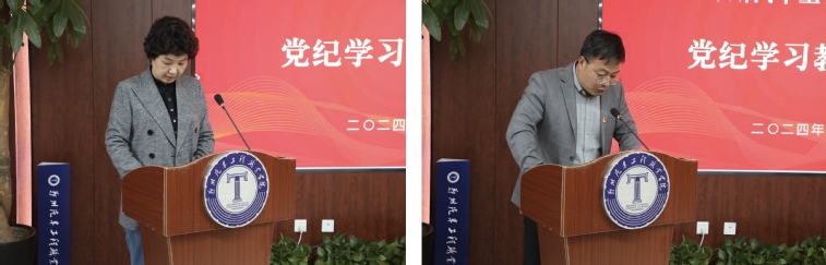 學(xué)校紀(jì)委副書記李赟、紀(jì)委委員唐曉分別領(lǐng)學(xué)《中國共產(chǎn)黨紀(jì)律處分條例》篇章