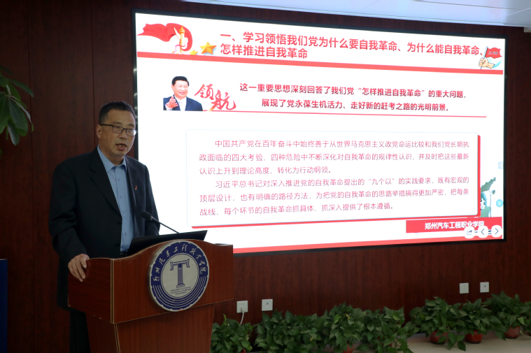 為深入學(xué)習(xí)貫徹習(xí)近平總書記關(guān)于黨的自我革命的重要思想,認(rèn)真學(xué)習(xí)領(lǐng)會(huì)新修訂的《中國共產(chǎn)黨紀(jì)律處分條例》,按照《中共中央辦公廳關(guān)于在全黨開展黨紀(jì)學(xué)習(xí)教育的通知》要求和《中共鄭州汽車工程職業(yè)學(xué)院委員會(huì)關(guān)于在全校開展黨紀(jì)學(xué)習(xí)教育工作方案》安排,4月19日下午,學(xué)校黨紀(jì)學(xué)習(xí)教育讀書班在學(xué)校第一會(huì)議室開班。學(xué)校全體黨委委員、紀(jì)委委員以及各學(xué)院(部)黨總支書記、直屬黨支部書記、各部門中層以上黨員干部參加讀書班學(xué)習(xí),學(xué)校紀(jì)委書記韓志強(qiáng)主持會(huì)議。