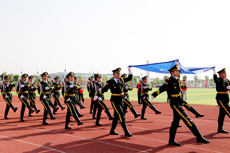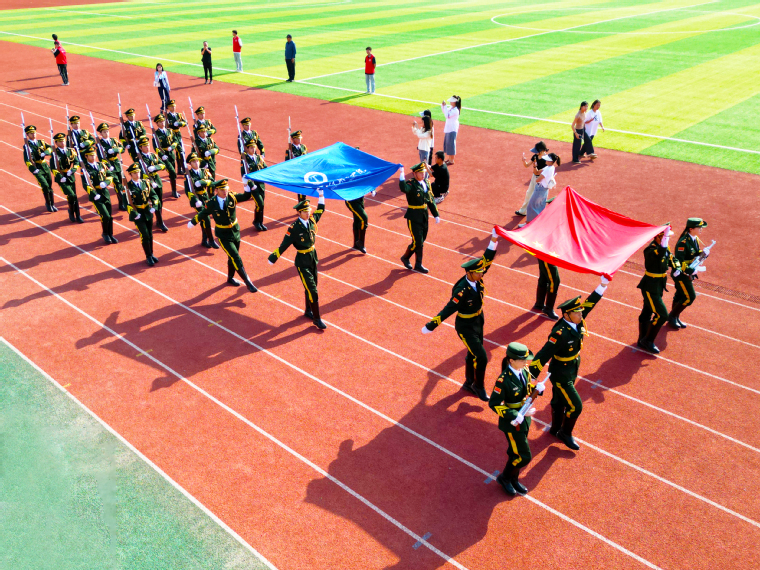 伴隨著《運(yùn)動(dòng)員進(jìn)行曲》的音樂(lè)奏響,英姿颯爽的國(guó)旗護(hù)衛(wèi)隊(duì)護(hù)送著鮮艷的五星紅旗莊嚴(yán)入場(chǎng)。彩旗方陣、裁判員方陣和學(xué)生方隊(duì)精神飽滿地依次從主席臺(tái)走過(guò)。