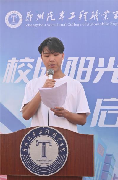 接下來,新能源2308班馮涵禹同學代表學生發(fā)言宣誓。