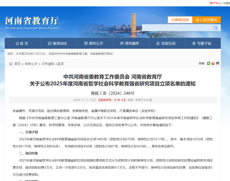 根據(jù)《中共河南省委教育工委辦公室河南省教育廳辦公室關(guān)于2025年度河南省哲學(xué)社會科學(xué)教育強省研究項目申報工作的通知》(豫教工委〔2024〕32號)要求,經(jīng)學(xué)校推薦、專家評審、公示無異議后,我校3個項目被立項為2025年度河南省哲學(xué)社會科學(xué)教育強省研究項目。