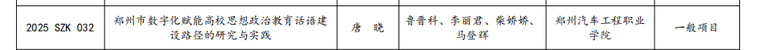 喜報(bào):我校2個(gè)項(xiàng)目立項(xiàng)為2025年鄭州市高等教育教學(xué)改革研究與實(shí)踐項(xiàng)目(課程思政)