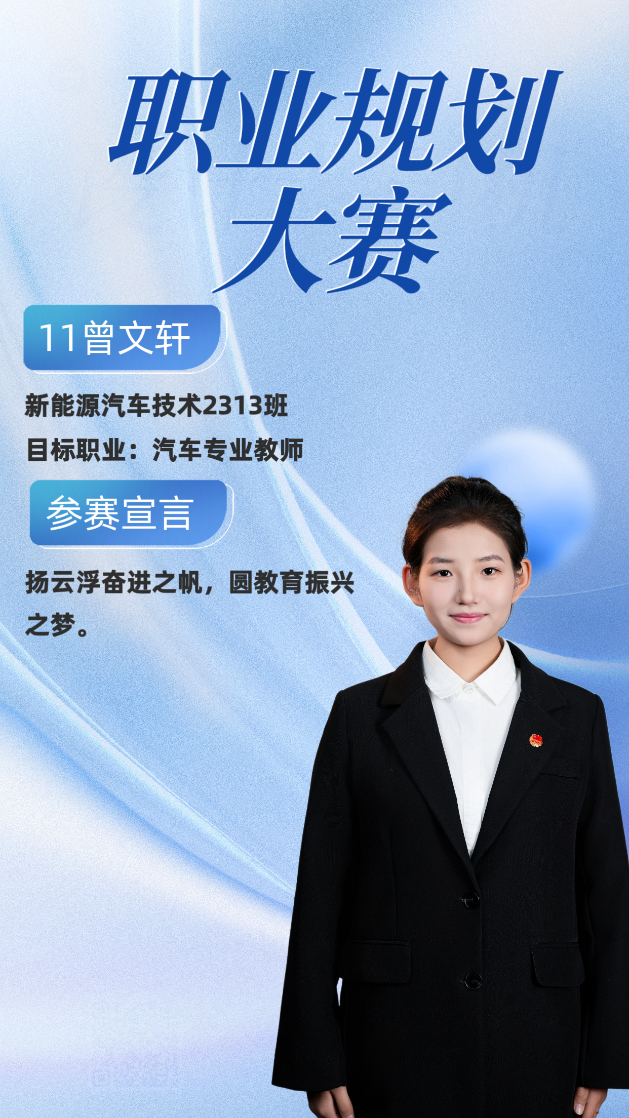 第二屆全國大學生職業(yè)規(guī)劃大賽鄭州汽車工程職業(yè)學院總決賽暨“天馬杯”第一屆校園職業(yè)規(guī)劃大賽自11月初啟動以來,經(jīng)過二級學院、校賽多輪選拔,共有11名選手晉級學校總決賽,他們將在總決賽現(xiàn)場追逐青春,揚帆啟航,職擊未來!