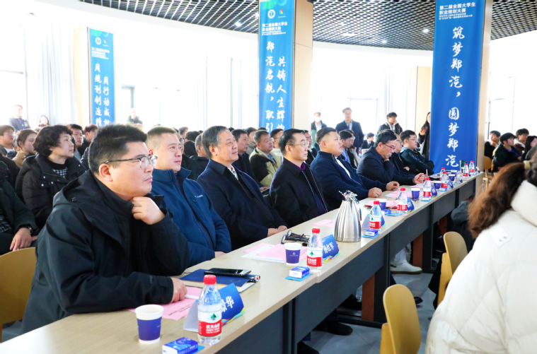 河南天馬集團(tuán)總裁馬智博,黨委書記張瑞春,校長薛培軍,副校長趙國運(yùn)、彭志宏、王新宇、孫紅軍,校長助理李一維、劉景華和各部門負(fù)責(zé)人出席大賽,由天基人力集團(tuán)CEO、工作啦總經(jīng)理坤池,河南天行健總經(jīng)理李慧霞,河南西城天道汽車貿(mào)易服務(wù)有限公司總經(jīng)理陸英杰及四位校內(nèi)老師擔(dān)任大賽評委。參加活動的還有全體輔導(dǎo)員、參賽選手指導(dǎo)教師和部分學(xué)生代表。