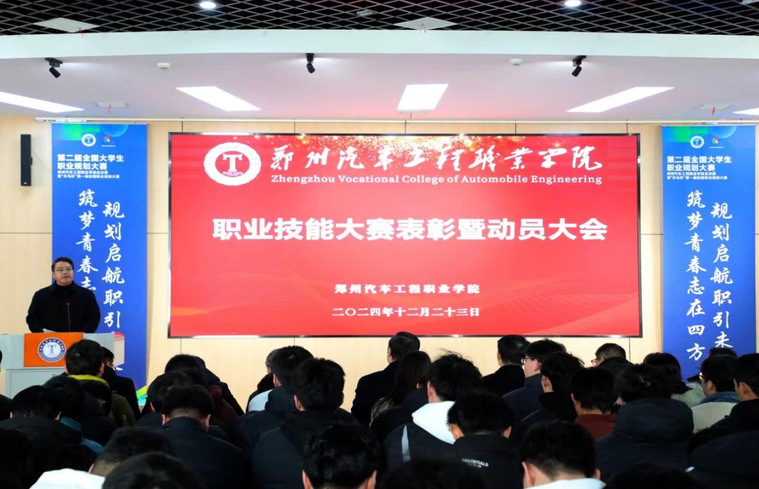 2024年12月23日,鄭州汽車工程職業(yè)學(xué)院在B1報(bào)告廳召開職業(yè)技能大賽表彰暨動員大會。此次大會旨在表彰在2024一帶一路暨金磚國家技能發(fā)展與技術(shù)創(chuàng)新大賽中國賽區(qū)——首屆新能源汽車驅(qū)動電機(jī)及控制技術(shù)(模擬仿真)賽項(xiàng)決賽中取得優(yōu)異成績的師生,并為即將參加2024年河南省高等職業(yè)教育技能大賽的師生進(jìn)行動員。