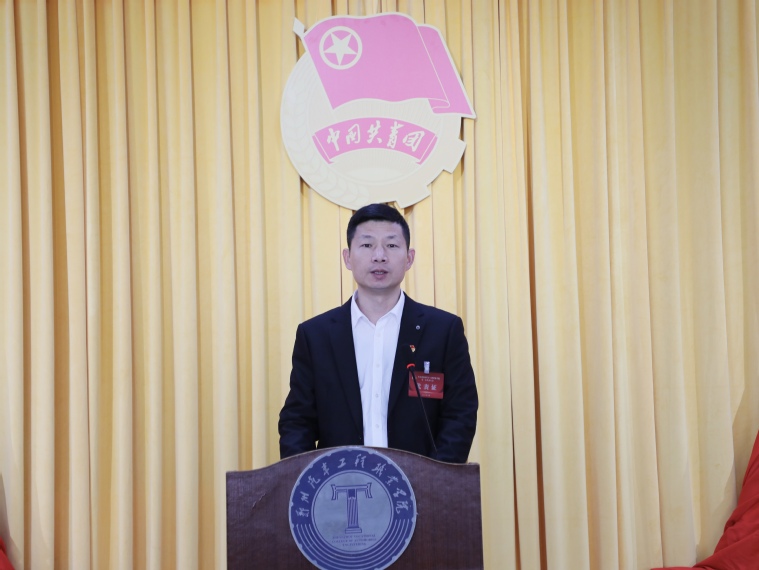 陳磊代表共青團(tuán)鄭州汽車工程職業(yè)學(xué)院委員會(huì)作題為《引擎驅(qū)動(dòng)青春夢(mèng),匠心鑄就新未來(lái),為建成特色鮮明的高水平汽車類職業(yè)院校注入青春動(dòng)能》的報(bào)告。