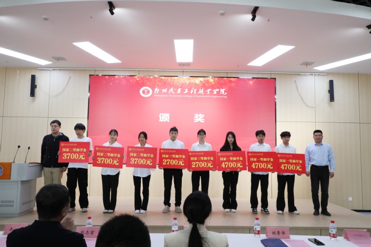 馬嘉璐在總結(jié)講話中向受到表彰的學生表示祝賀。她指出,我校不斷創(chuàng)新工作理念,嚴格執(zhí)行國家政策,規(guī)范評定程序,充分發(fā)揮獎助學金的示范引領(lǐng)和正面激勵作用,并對同學們提出三點要求。一是珍惜榮譽,立志成才。榮譽是一種責任,更是一種使命,要珍惜黨和政府及學校的關(guān)懷鼓勵,珍視老師和父母的關(guān)心培養(yǎng),把獲獎化作新的動力,謙虛謹慎、不驕不躁、刻苦鉆研、持續(xù)奮斗;二是刻苦學習,全面發(fā)展。同學們要刻苦鉆研,潛心學習,爭取在專業(yè)領(lǐng)域取得優(yōu)異的成績,也要注重參加社會實踐,提高綜合素質(zhì)能力,做到全面發(fā)展,今后才能大有作為;三是熱愛鄭汽,心存感恩。學校給同學們提供優(yōu)美的學習環(huán)境,讓同學們掌握豐富的知識,陶冶高尚的道德情操,養(yǎng)成良好的行為習慣。同學們要做到尊敬師長,團結(jié)同學,品行端正,秉承“修德精技,慎思篤行”的校訓,發(fā)揚鄭汽的優(yōu)良校風和學風。她希望同學們以匠心致初心,在實訓中錘煉技藝,在賽場上追求卓越;以感恩礪前行,將國家與社會的關(guān)愛轉(zhuǎn)化為成長動力;以擔當繪青春,爭做行業(yè)棟梁,用所學服務社會,讓奮斗成為人生最亮麗的底色。