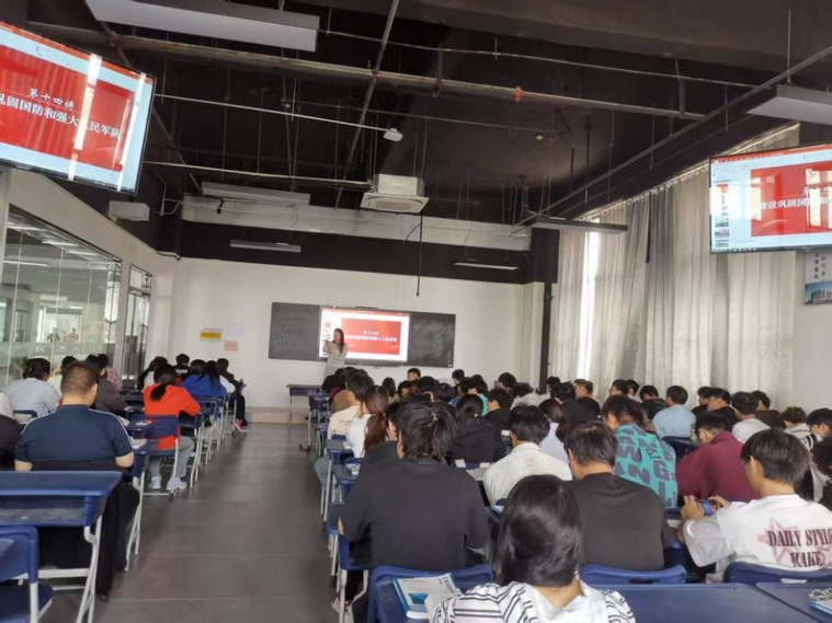 王迪當堂講授的主題是國防建設。她先讓學生跟著解放軍整齊行進的視頻唱軍歌,感受雄壯的氣勢,爾后依次講了解放軍的光輝歷史、我國現在面臨的安全挑戰(zhàn)及建設強大國防的方略。