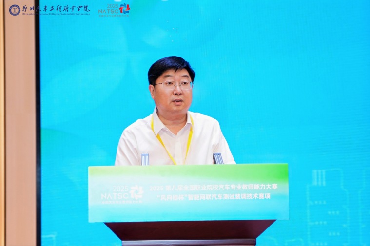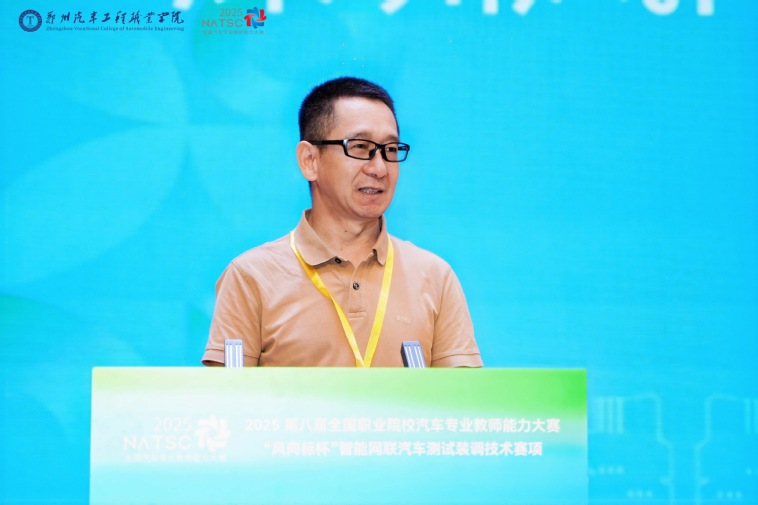 樓志剛代表主辦方中國(guó)汽車(chē)工程學(xué)會(huì)致辭,他表示鄭州汽車(chē)工程職業(yè)學(xué)院承辦此賽事,是貫徹習(xí)近平總書(shū)記關(guān)于“推動(dòng)職業(yè)教育與產(chǎn)業(yè)需求緊密對(duì)接”重要指示的具體實(shí)踐。賽事倡導(dǎo)參賽教師將賽場(chǎng)經(jīng)驗(yàn)轉(zhuǎn)化為教學(xué)案例,推動(dòng)課程與行業(yè)標(biāo)準(zhǔn)接軌;深化校企合作,實(shí)現(xiàn)“測(cè)試車(chē)間即課堂、工程師即講師”;著力培養(yǎng)適應(yīng)智能網(wǎng)聯(lián)產(chǎn)業(yè)需求的技術(shù)技能人才,為打造高素質(zhì)教師隊(duì)伍、助力中國(guó)汽車(chē)產(chǎn)業(yè)智能化升級(jí)貢獻(xiàn)力量。