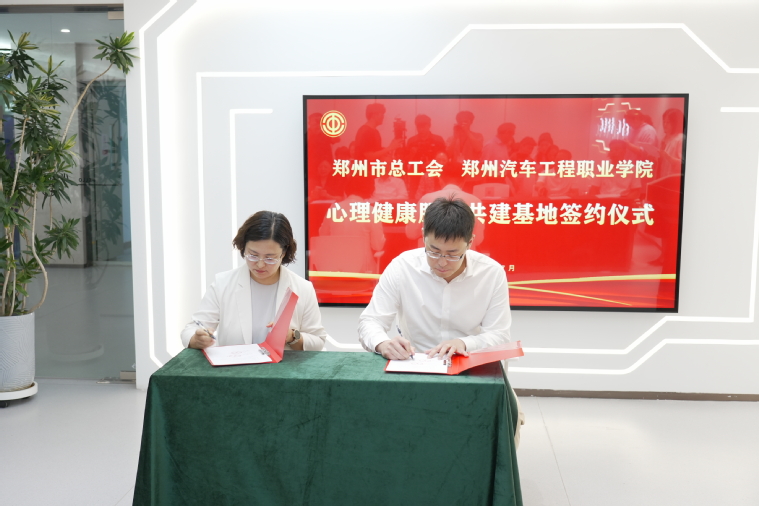 7月10日上午,鄭州市“工會+高?!毙睦斫】捣展步ê灱s儀式在鄭州市總工會幸福體驗館舉行。鄭州汽車工程職業(yè)學院與鄭州大學等11所高校成為首批簽約單位,共同探索職工心理健康服務新模式。我校工會副主席李一維、學生處副處長陳磊出席簽約儀式。