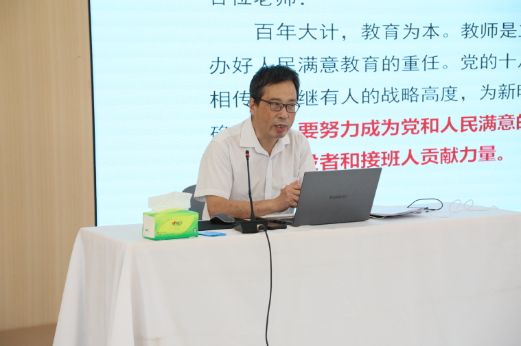開班儀式結(jié)束后,黨委書記張瑞春以“做師德高尚的新時代‘四有’好老師”為主題,為新教職工帶來首場專題講座。他從理想信念、道德情操、扎實學(xué)識、仁愛之心四個維度深入闡釋,引導(dǎo)大家將“四有”好老師標準內(nèi)化于心、外化于行。他強調(diào),理想信念是教師教書育人的精神支柱,勉勵大家始終胸懷“國之大者”,堅定“為黨育人、為國育才”的初心使命,自覺將個人理想融入黨和國家事業(yè),努力成為學(xué)生錘煉品格、學(xué)習(xí)知識、創(chuàng)新思維、奉獻祖國的引路人。在道德情操方面,要求教師恪守師德底線,錘煉高尚品格,堅持以德立身、以德立學(xué)、以德施教,成為學(xué)生道德修養(yǎng)的標桿。在扎實學(xué)識層面,指出新時代教師必須樹立終身學(xué)習(xí)理念,緊跟科技與職業(yè)教育前沿,不斷提升教學(xué)科研與實踐能力,以深厚學(xué)識啟迪學(xué)生智慧。談到仁愛之心時強調(diào),教育是“仁而愛人”的事業(yè),教師應(yīng)真情、真心、真誠關(guān)愛每一位學(xué)生,做到嚴愛相濟、潤己澤人,以愛心與責(zé)任點亮學(xué)生的成長之路。