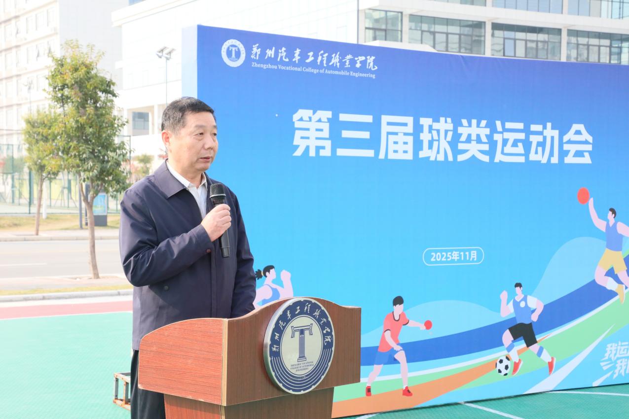 為豐富校園文化生活,增強(qiáng)學(xué)生身體素質(zhì),彰顯鄭汽學(xué)子團(tuán)結(jié)拼搏、昂揚(yáng)向上的精神風(fēng)貌,2025年11月4日下午,鄭州汽車工程職業(yè)學(xué)院第三屆球類運(yùn)動(dòng)會(huì)在學(xué)校運(yùn)動(dòng)場(chǎng)隆重開(kāi)幕。校長(zhǎng)助理臧俊炎、沙杰,學(xué)生處、團(tuán)委、各學(xué)院負(fù)責(zé)人、輔導(dǎo)員、全體運(yùn)動(dòng)員、裁判員等參加了開(kāi)幕式。