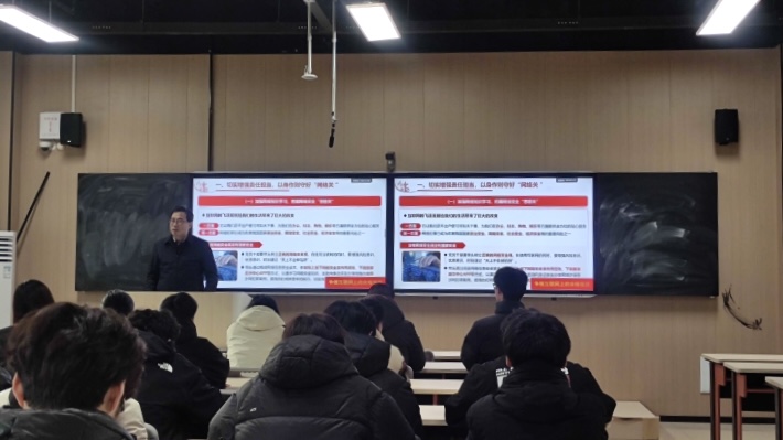 課堂上,張瑞春以“遵守網(wǎng)絡(luò)行為規(guī)范,爭做互聯(lián)網(wǎng)上的合格黨員”為題,從理論、專業(yè)、案例等方面,帶領(lǐng)師生學(xué)習(xí)習(xí)近平總書記關(guān)于網(wǎng)絡(luò)安全提出的新思想新觀點新論斷,深入學(xué)習(xí)《中國共產(chǎn)黨黨員網(wǎng)絡(luò)行為規(guī)定》和新修訂的《中國共產(chǎn)黨紀(jì)律處分條例》對黨員在網(wǎng)絡(luò)空間不當(dāng)言行的有關(guān)處分規(guī)定,并分別以“切實增強(qiáng)責(zé)任擔(dān)當(dāng),以身作則守好網(wǎng)絡(luò)關(guān)”角度,闡述提升安全防范意識、把牢網(wǎng)絡(luò)“思想關(guān)”,加強(qiáng)網(wǎng)絡(luò)知識學(xué)習(xí)、把握網(wǎng)絡(luò)安全“技術(shù)關(guān)”,強(qiáng)化網(wǎng)絡(luò)行為監(jiān)督,把牢網(wǎng)絡(luò)安全“行動關(guān)”;從“帶頭踐行做好宣傳,不斷弘揚(yáng)正能量唱響主旋律”角度,闡述維護(hù)網(wǎng)絡(luò)安全就是維護(hù)國家安全、社會穩(wěn)定和人民福祉,黨員應(yīng)在宣傳網(wǎng)絡(luò)安全知識方面發(fā)揮關(guān)鍵作用,帶頭遵守法律法規(guī)、自覺維護(hù)網(wǎng)絡(luò)空間的純凈;從“主動作為強(qiáng)化監(jiān)督,持續(xù)營造晴朗網(wǎng)絡(luò)環(huán)境”角度,闡述要遵規(guī)守紀(jì)弘揚(yáng)主旋律,強(qiáng)化安全意識錘煉硬作風(fēng)、堅定政治定力敢于善于斗爭。