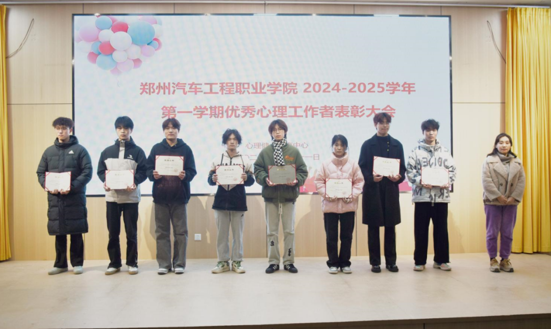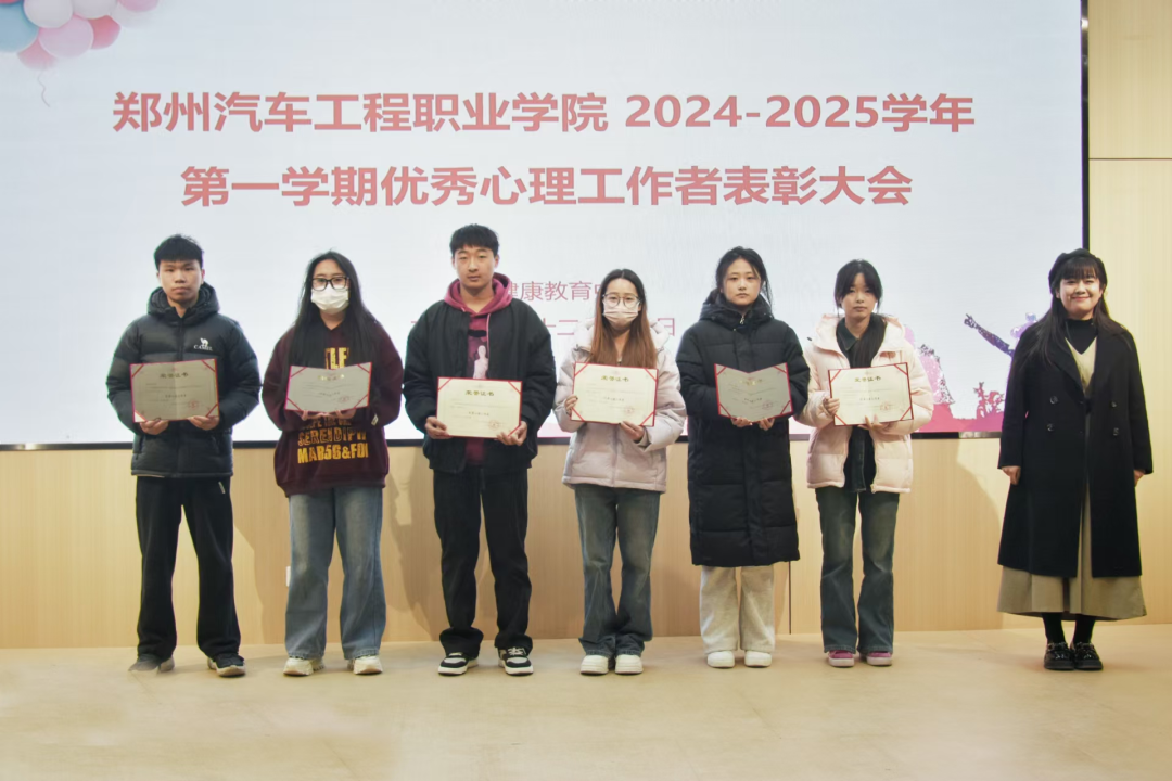 2024年12月11日晚,2024-2025學(xué)年第一學(xué)期“優(yōu)秀心理工作者”表彰大會在礪能樓招辦大廳順利召開。出席的嘉賓有學(xué)生處唐曉處長、心理健康教育中心負(fù)責(zé)人袁旭輝老師,以及來自新能源與智能汽車學(xué)院、電子信息工程學(xué)院和電商物流學(xué)院的心理專干張亞瑞老師、王瀟雅老師和王楠老師。此外,全體輔導(dǎo)員和學(xué)生代表也參加了此次大會。