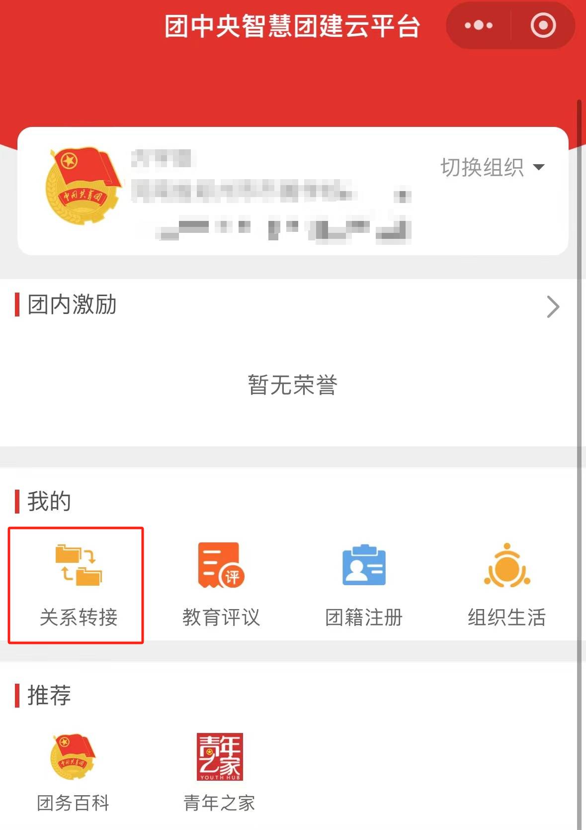 登錄后,點(diǎn)擊“我的”找到“關(guān)系轉(zhuǎn)接”功能。進(jìn)入轉(zhuǎn)接頁面后,補(bǔ)充本人聯(lián)系方式,完善其他相關(guān)信息。