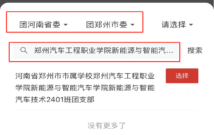 填寫轉(zhuǎn)入組織信息時(shí),轉(zhuǎn)入組織是否屬于北京/廣東/福建處選擇“否”;轉(zhuǎn)出原因選擇為“升學(xué)”;申請(qǐng)轉(zhuǎn)入組織時(shí)選擇“團(tuán)河南省委”—“團(tuán)鄭州市委”—搜索欄中填寫:鄭州汽車工程職業(yè)學(xué)院+(學(xué)院全稱)+(專業(yè)全稱)+班級(jí)。