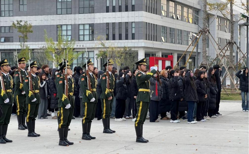 11月18日電商物流學(xué)院、數(shù)字藝術(shù)與設(shè)計(jì)學(xué)院組織升國旗儀式。院長杜天亮、團(tuán)總支及學(xué)管負(fù)責(zé)人孫明皓、輔導(dǎo)員王楠、王浩澤及學(xué)生代表200余人參加。儀式由孫明皓老師主持。