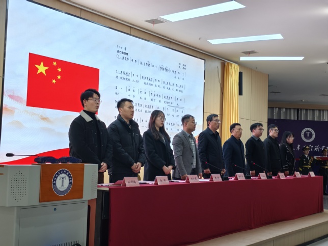 儀式在莊嚴的國歌聲中拉開序幕,全體與會人員神情嚴肅、精神飽滿,以嘹亮的聲音共唱國歌。