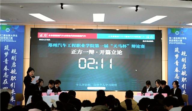為進(jìn)一步豐富校園文化生活,培養(yǎng)和提升同學(xué)們的邏輯思維能力與語(yǔ)言表達(dá)能力,展現(xiàn)鄭汽學(xué)子的智慧和風(fēng)采,我校于12月19日下午在B1報(bào)告廳舉行校園首屆辯論賽決賽。