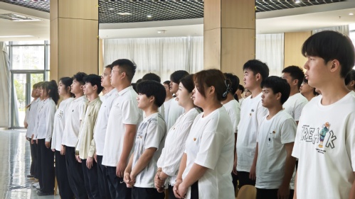 儀式在雄壯的國歌聲中拉開帷幕,全體與會人員肅立齊唱國歌,嘹亮的歌聲展現(xiàn)了新時代青年的昂揚斗志。