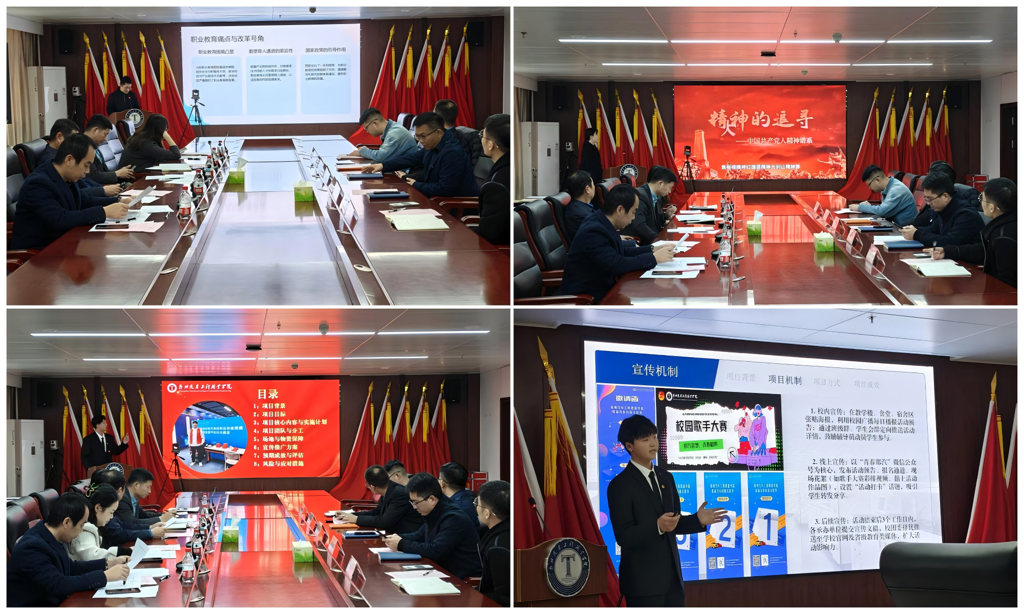 2025年10月29日下午,鄭州汽車工程職業(yè)學院2025年度“活力杯”共青團基層基礎工作大賽評審會在行政樓701會議室成功舉行。校長助理臧俊炎,黨委宣傳部副部長王羽西,學生處副處長、校團委書記陳磊,校團委副書記方宇辰,馬克思主義學院教工黨支部書記、院長助理張建軍,各學院團總支書記和團的工作負責人,參賽項目代表齊聚一堂,共同檢閱一年來學校共青團基層基礎工作的豐碩成果,謀劃未來共青團事業(yè)的高質(zhì)量發(fā)展。