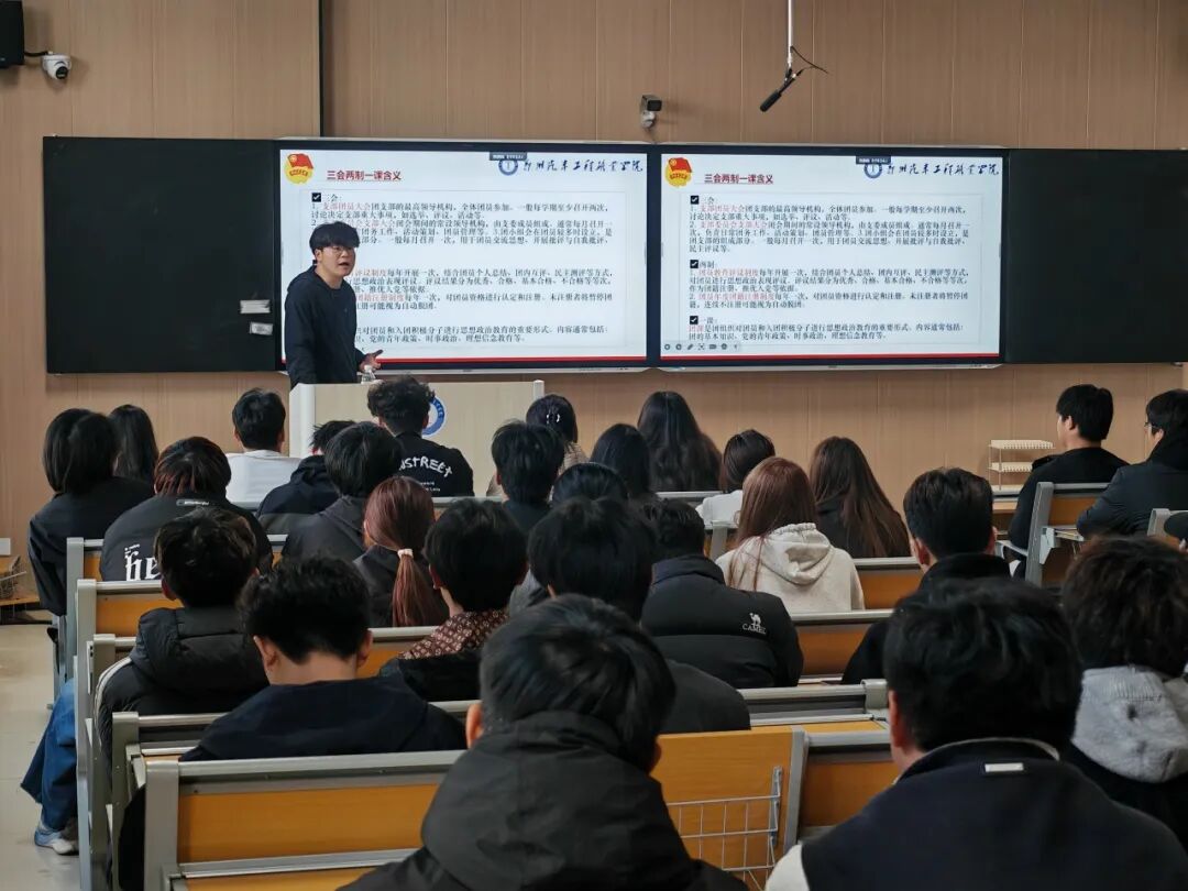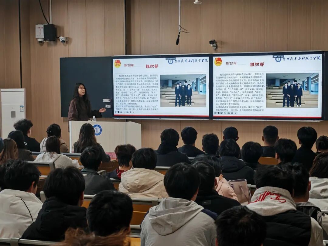 大會(huì)開始,校團(tuán)委組織部部長(zhǎng)李智琳進(jìn)行部門介紹。她系統(tǒng)講解了部門日常工作流程與重點(diǎn)內(nèi)容,幫助新任團(tuán)支書快速明晰與組織部的對(duì)接方向,為后續(xù)工作協(xié)作打下基礎(chǔ)。會(huì)議核心環(huán)節(jié)圍繞“如何做好一名合格團(tuán)支書”展開。